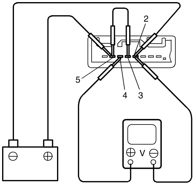 4) Check that the voltmeter indicates the battery voltage (10 - 14 V).