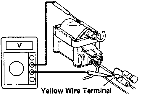 (b) Using a voltmeter, connect the positive (+) probe the yellow wire for the igniter side and the negative (-) probe to body ground.