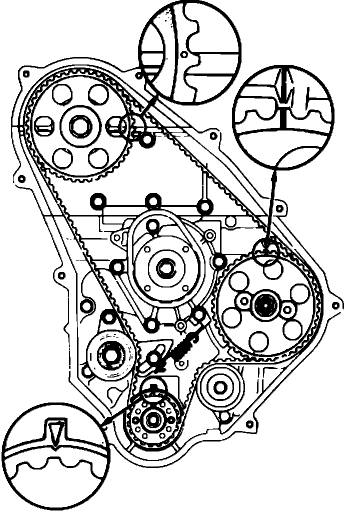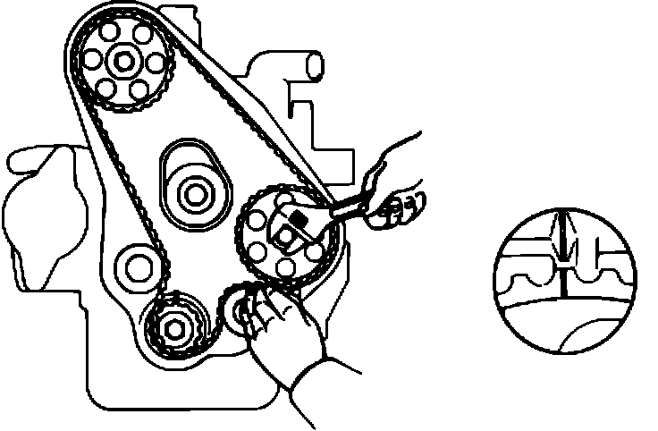 b. Ensure timing belt is completely meshed with camshaft sprocket, crankshaft sprocket and injection pump drive pulley.