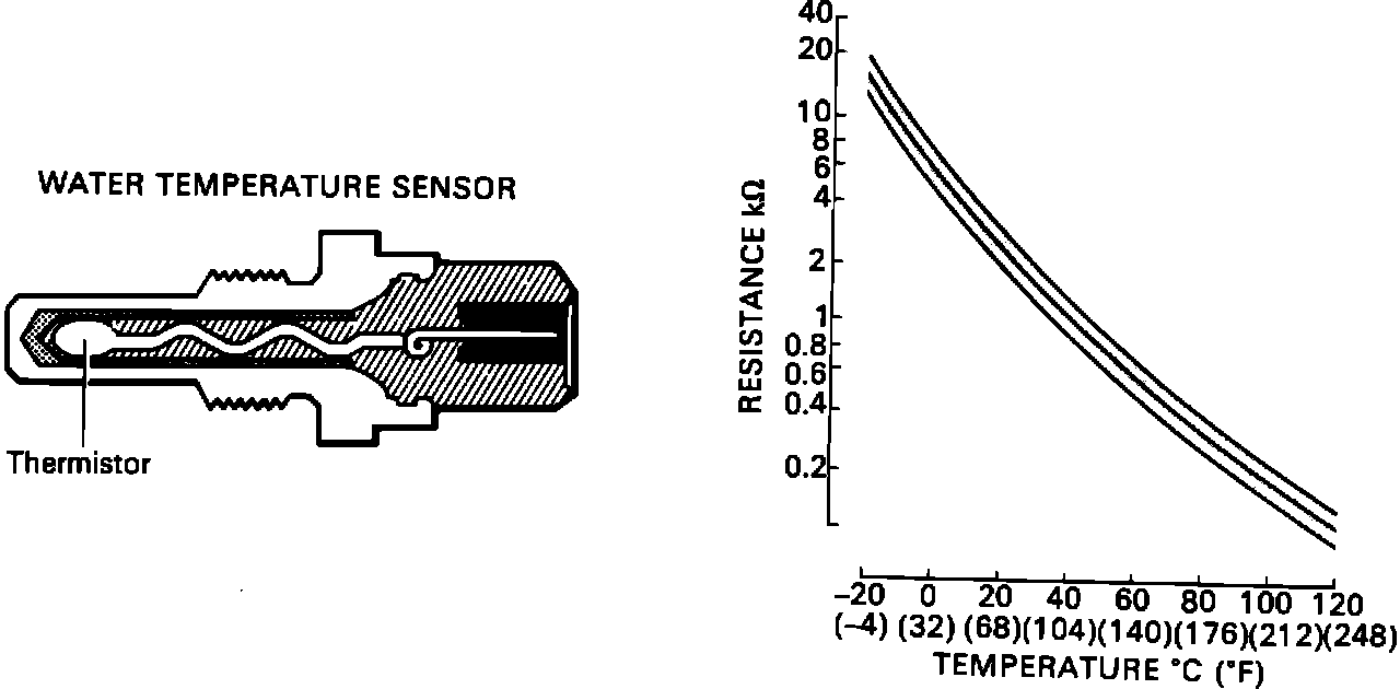 1. Disconnect the connector from the Water Temperature Sensor.2. Using an Ohmmeter, measure the resistance between the terminals.