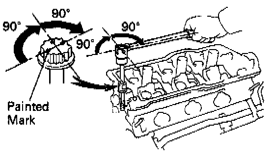 Retighten the cylinder head bolts by 9O° in the numerical order shown.