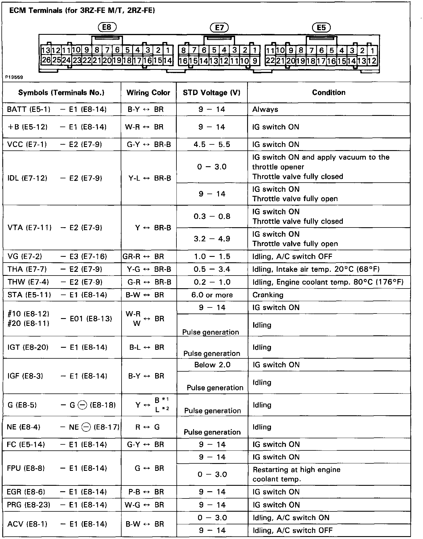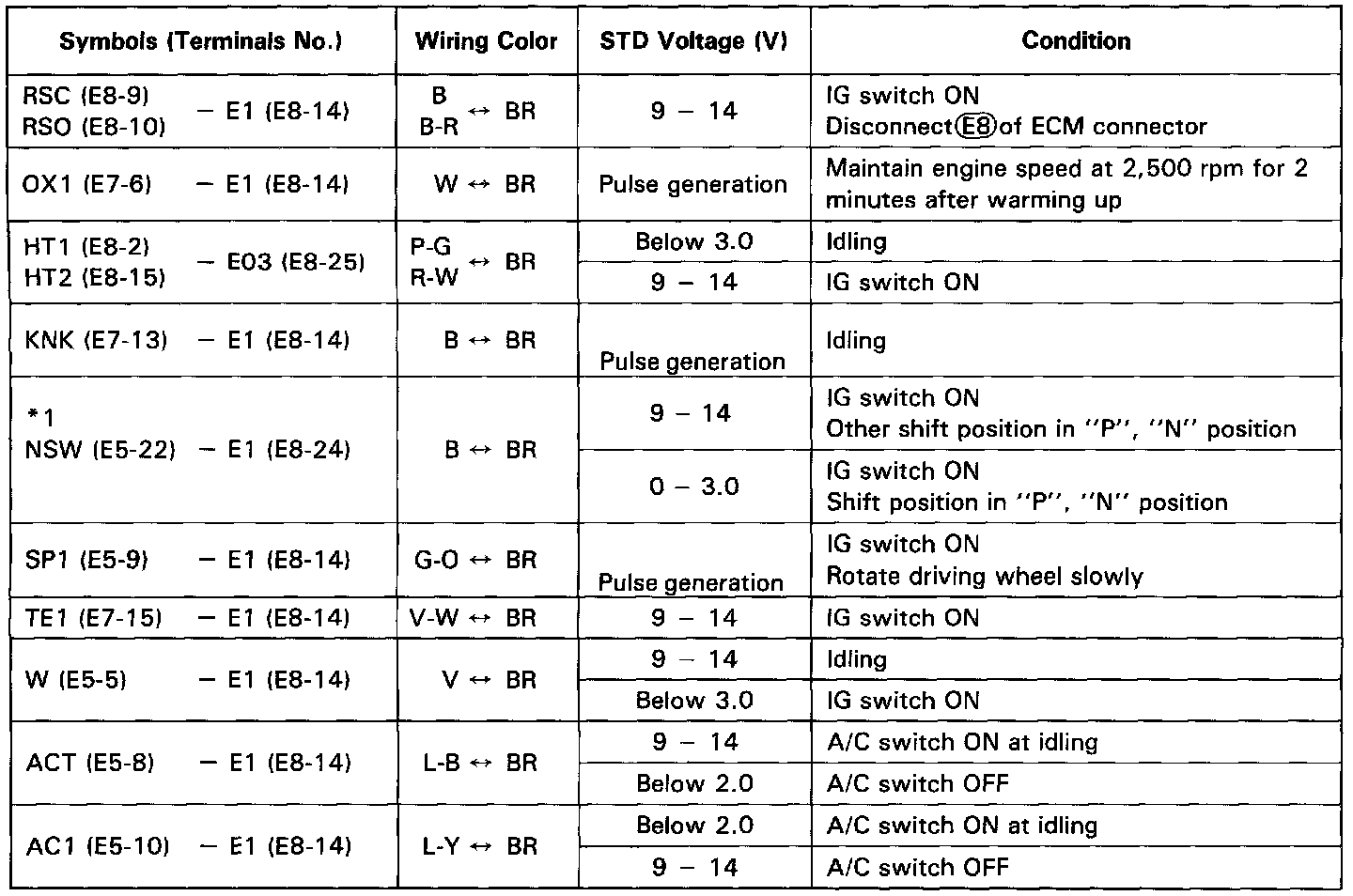 STANDARD VALUE OF ECM TERMINALS