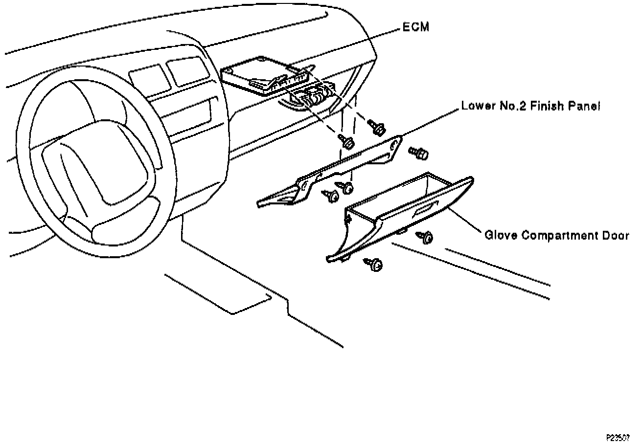 INSTALLATION HINT: Installation is in the reverse order of removal.1. REMOVE GLOVE COMPARTMENT DOOR.