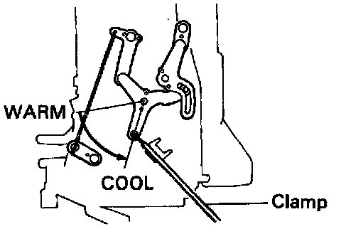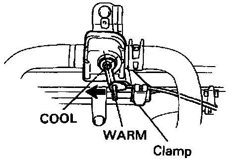 Set the air mix damper on "COOL" position and install the control cable and lock the clamp.