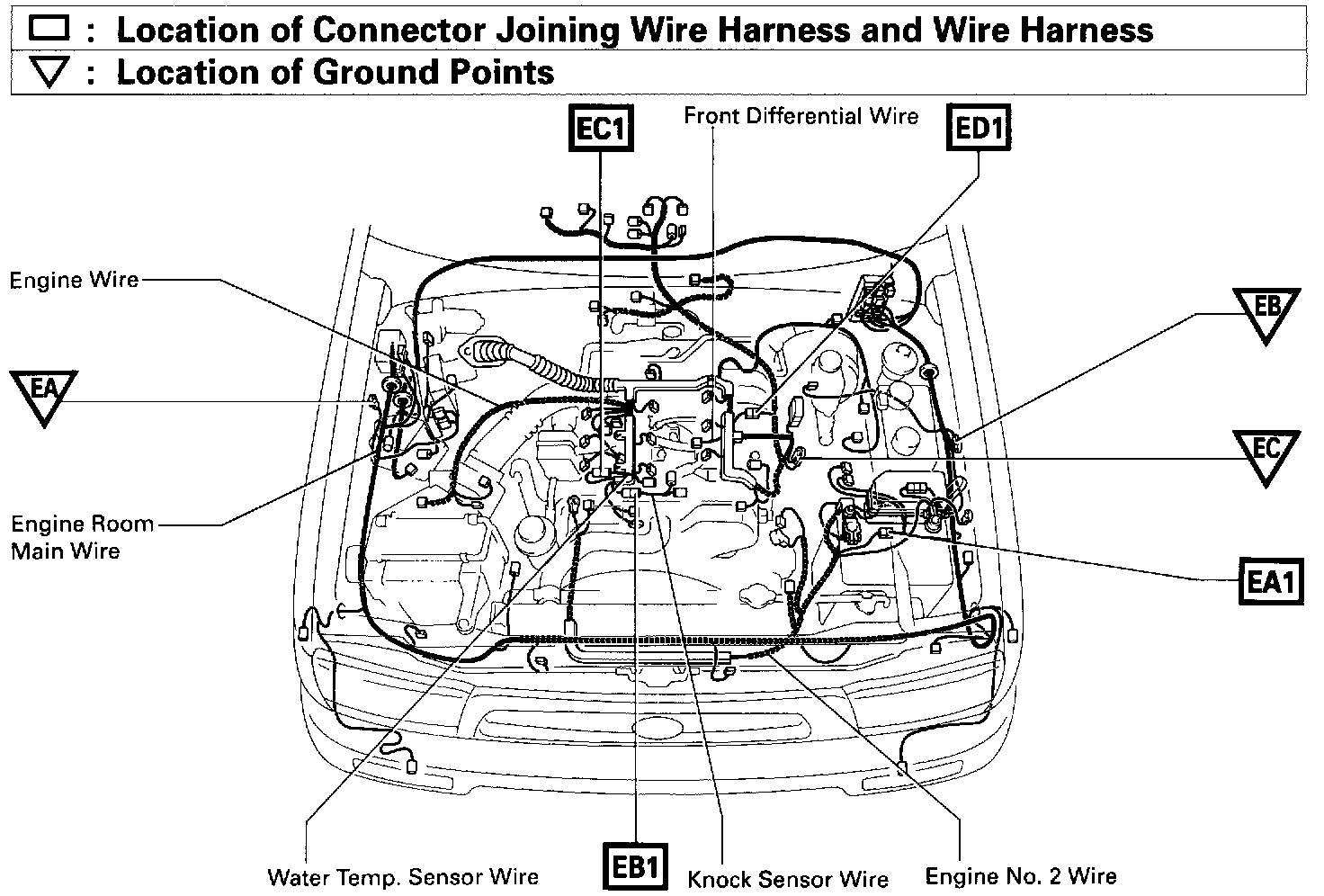 Location Of Connector Joining Wire Harness And Wire Harness Ground Points (Fig 40):