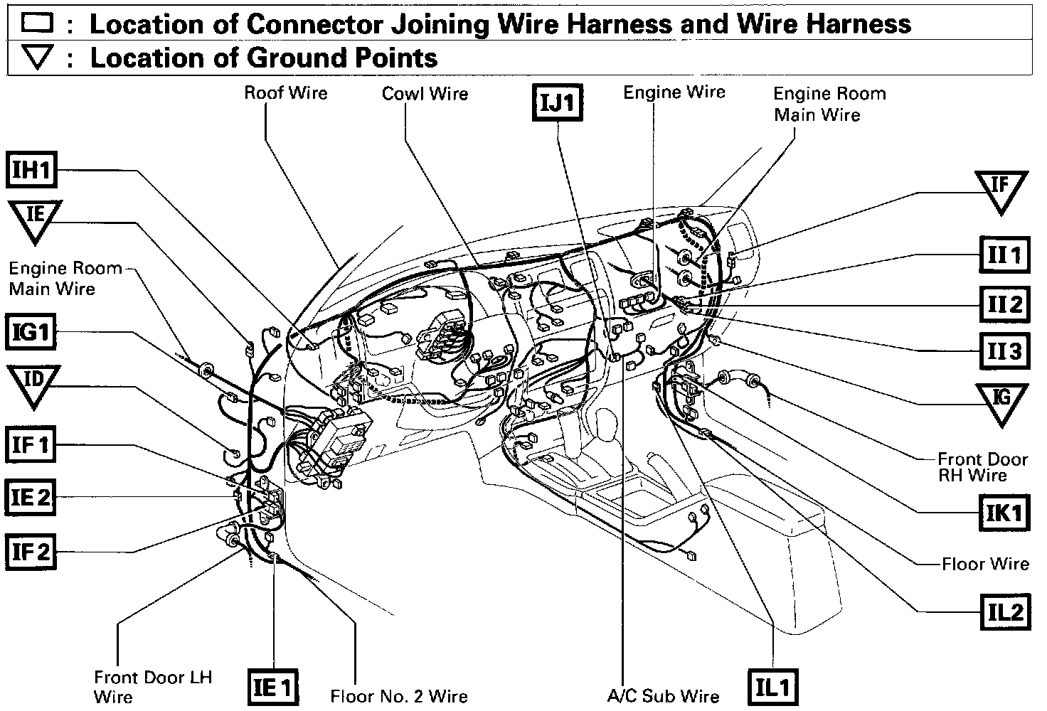 Location Of Connector Joining Wire Harness And Wire Harness Ground Points (Fig 40):