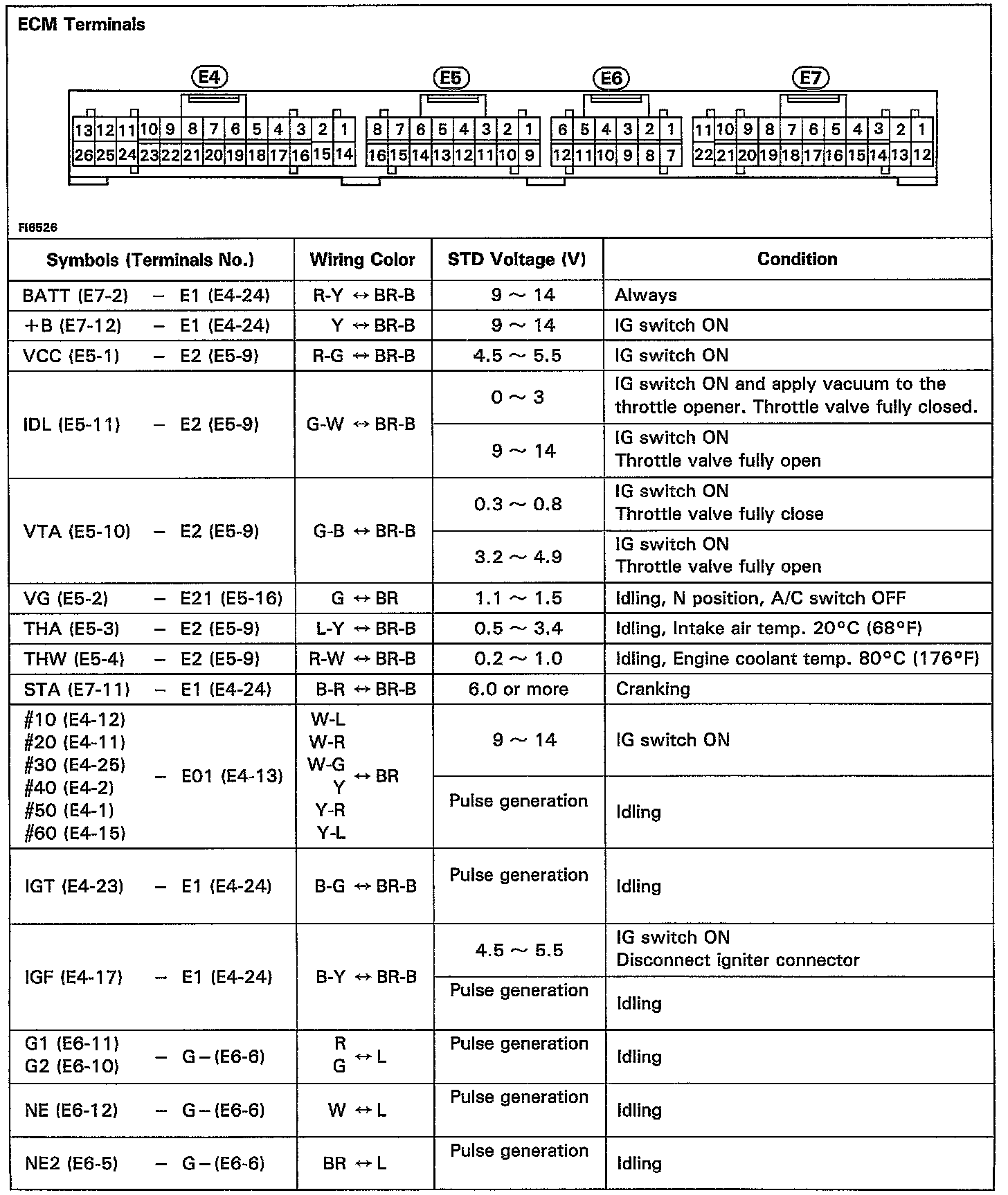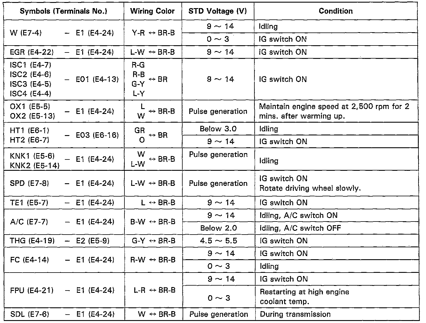 When measuring the voltage or resistance of the connector part of the ECM, always insert the test probe into the connector from the wire harness side.
