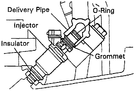 4. Install the injector to the delivery pipe and intake manifold as shown in the illustration.
