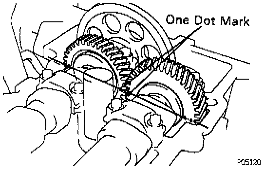 - Verify that the timing marks with 1 and 2 dots are in straight line on the cylinder head surface as shown in the illustration.