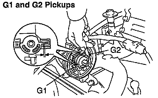 - Using a thickness gauge, measure the gap between the signal rotor and the pickup coil projection.