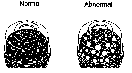 4. Check for foaming or emulsification. If there is foaming or emulsification, bleed power steering system.