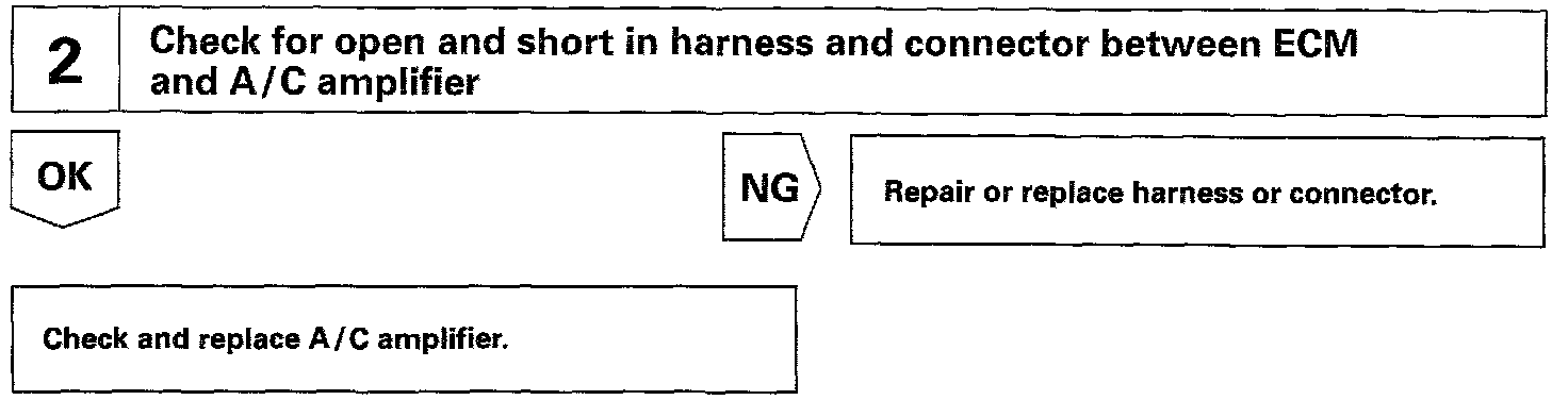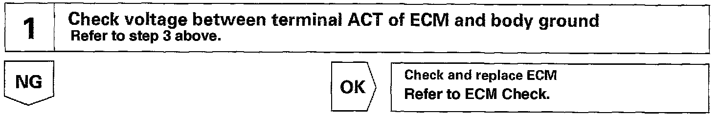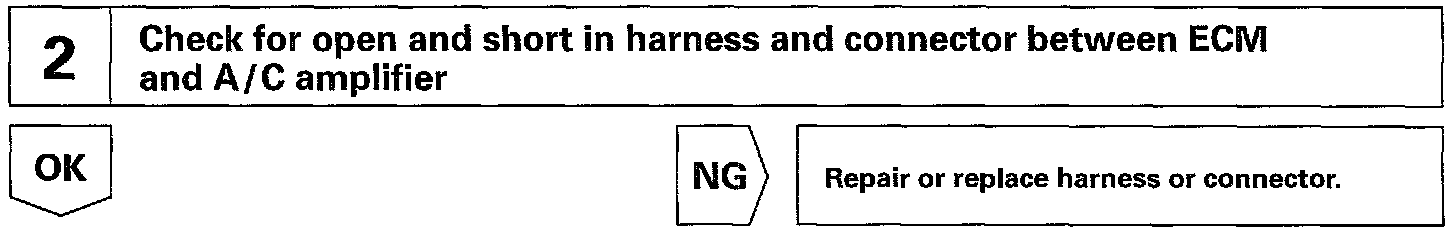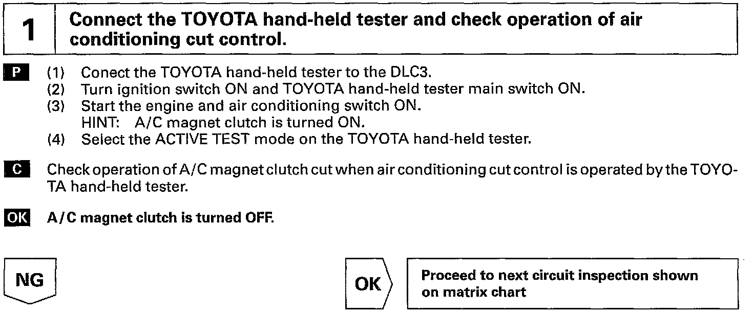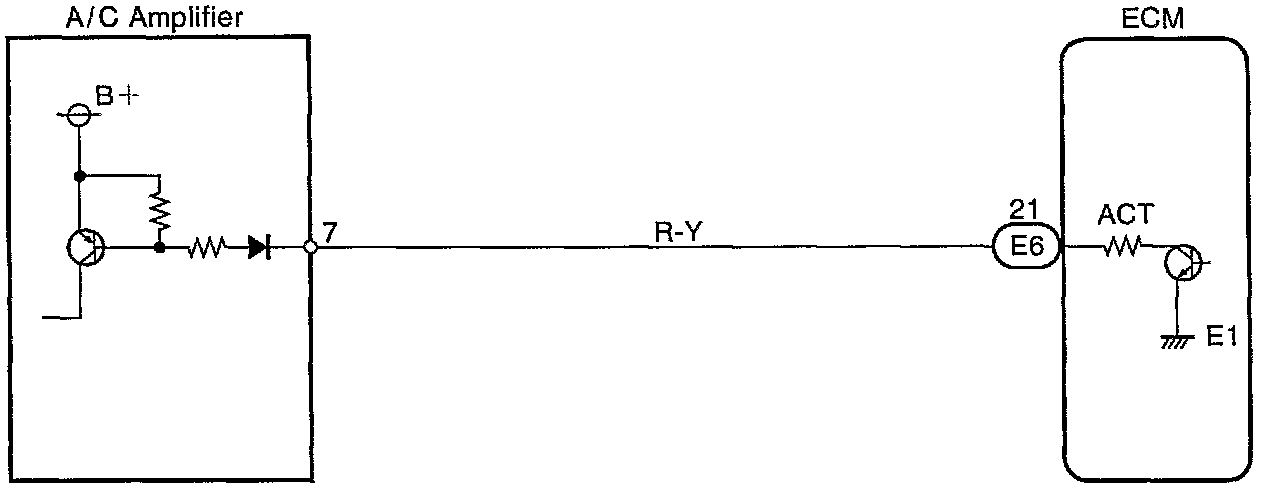 This circuit cuts air conditioning operation during vehicle acceleration in order to increase acceleration performance. During acceleration with the vehicle speed at 25 km/h (16 mph) or less, engine speed at 1,200 rpm or less and throttle valve opening angle at 600 or more, the A/C magnet switch is turned OFF for several seconds.