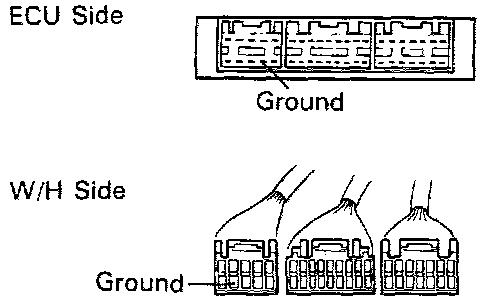 (2) Disconnect the ECU connector, check the ground terminals on the ECU side and the wire harness side for bend and check the contact pressure.