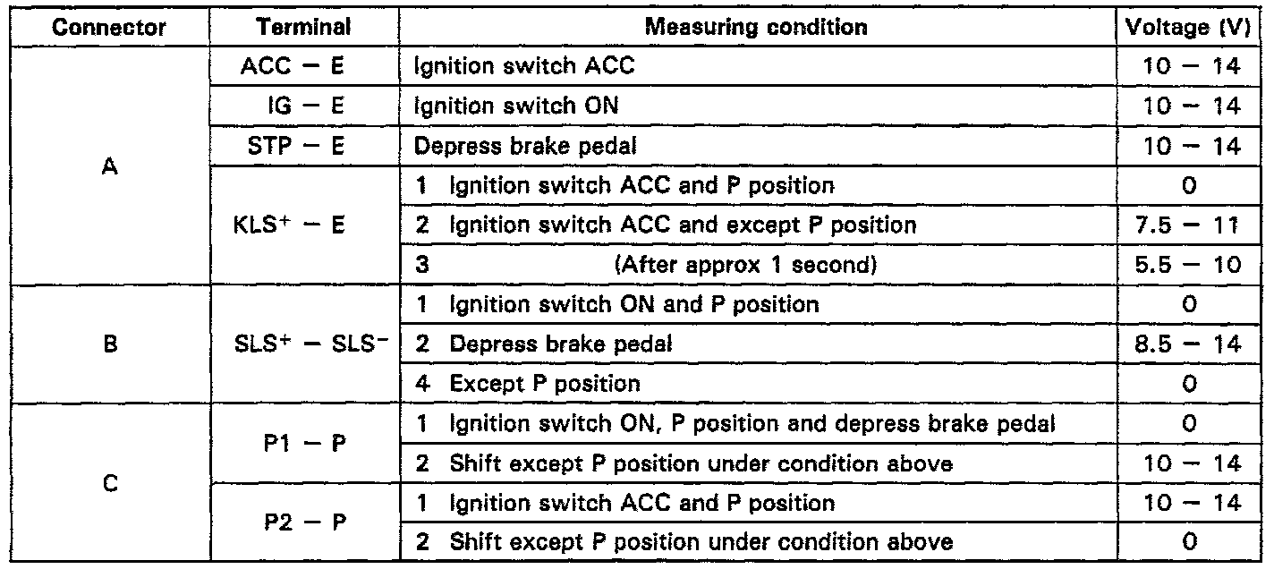 INSPECT SHIFT LOCK CONTROL ECU
