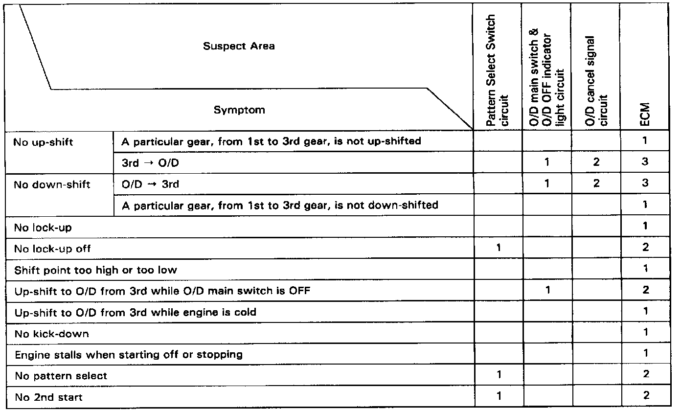 If a normal code is displayed during the DTC check but the trouble still occurs, check the circuits for each symptom in the order given in the charts on the following images and proceed for troubleshooting.The Matrix Chart is divided into 3 chapters.