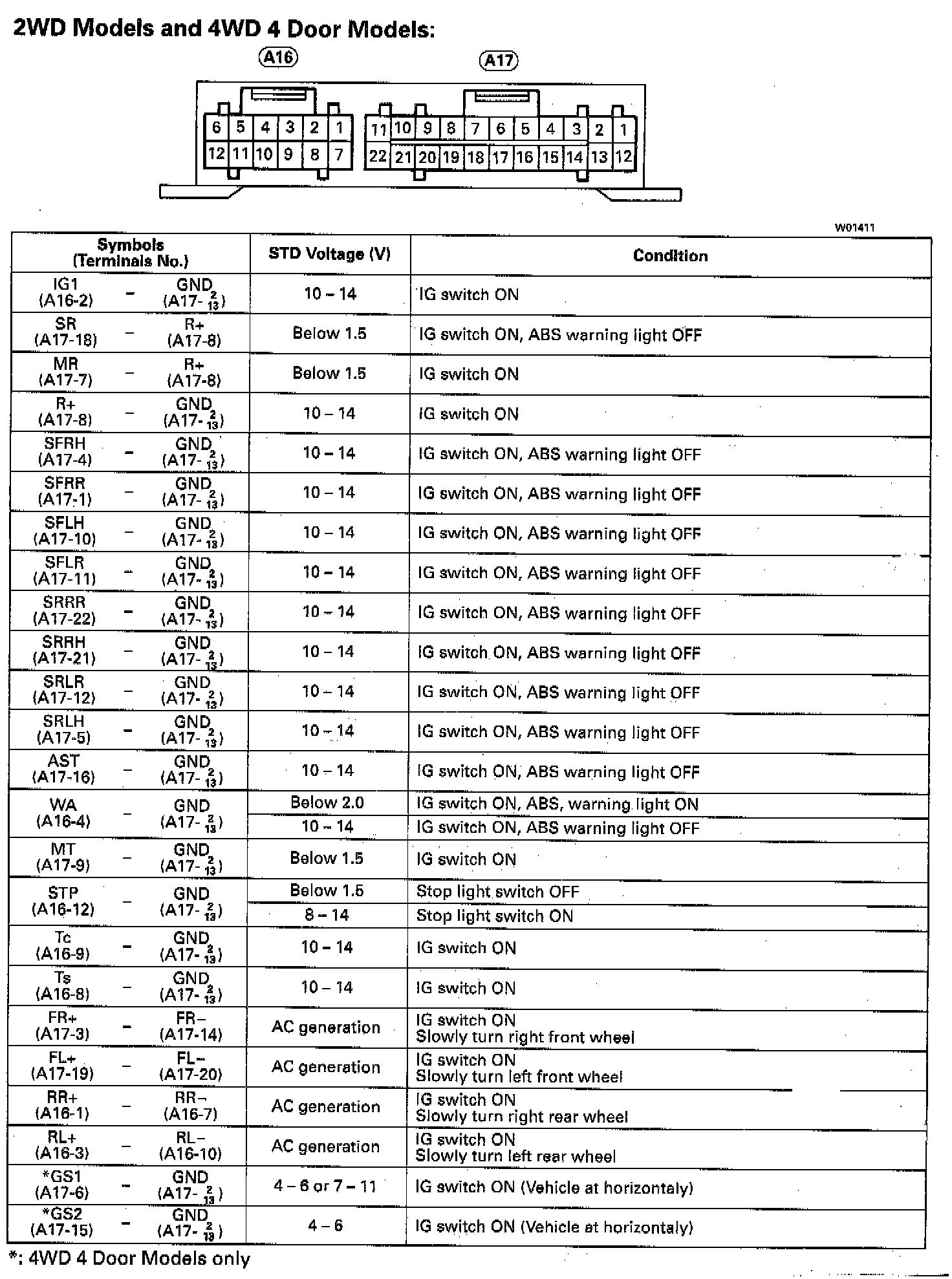 Standard Value Of ECU Terminals: 2WD Models And 4WD 4 Door Models: