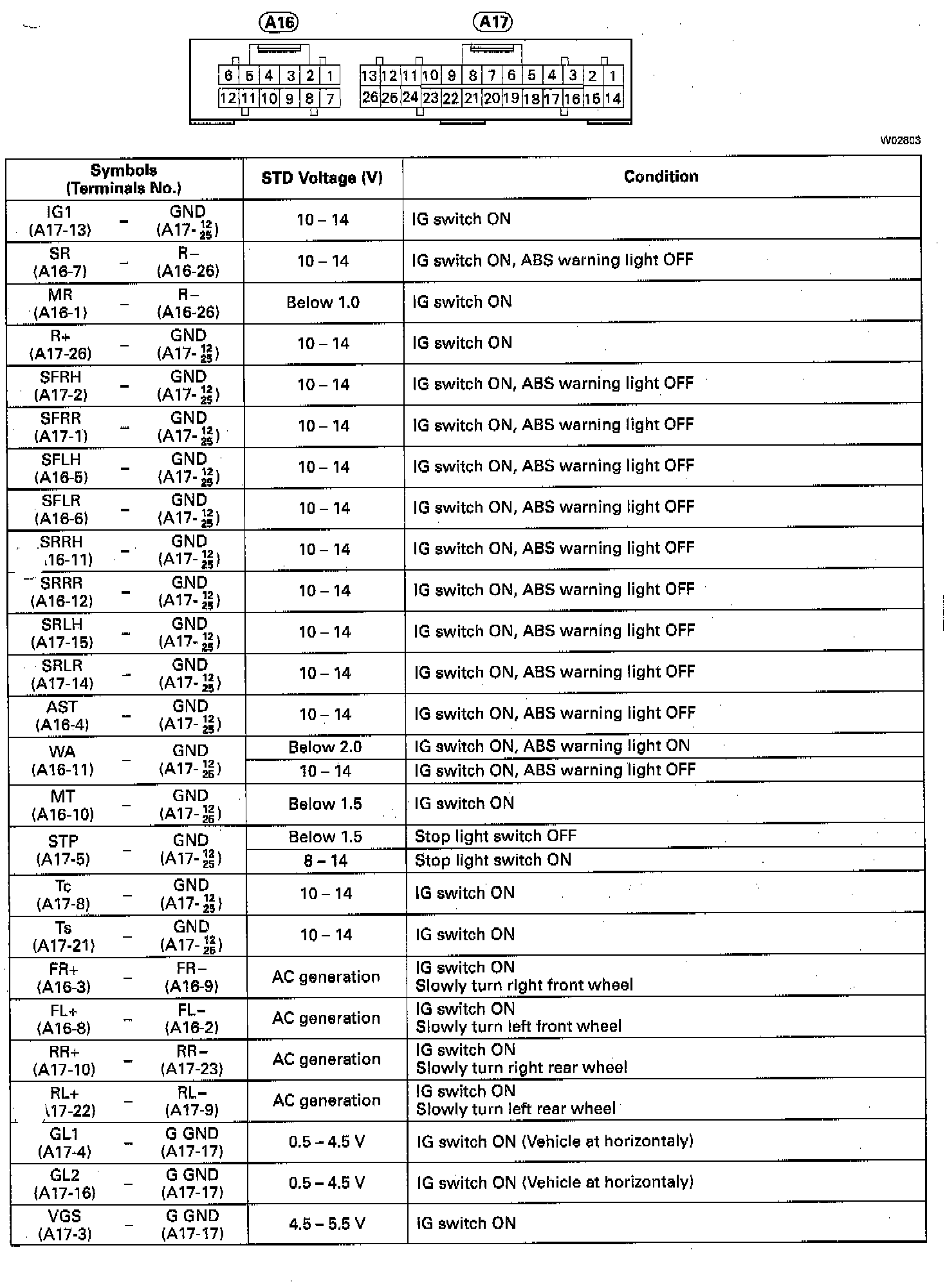 Standard Value Of ECU Terminals: 4WD 2 Door Models: