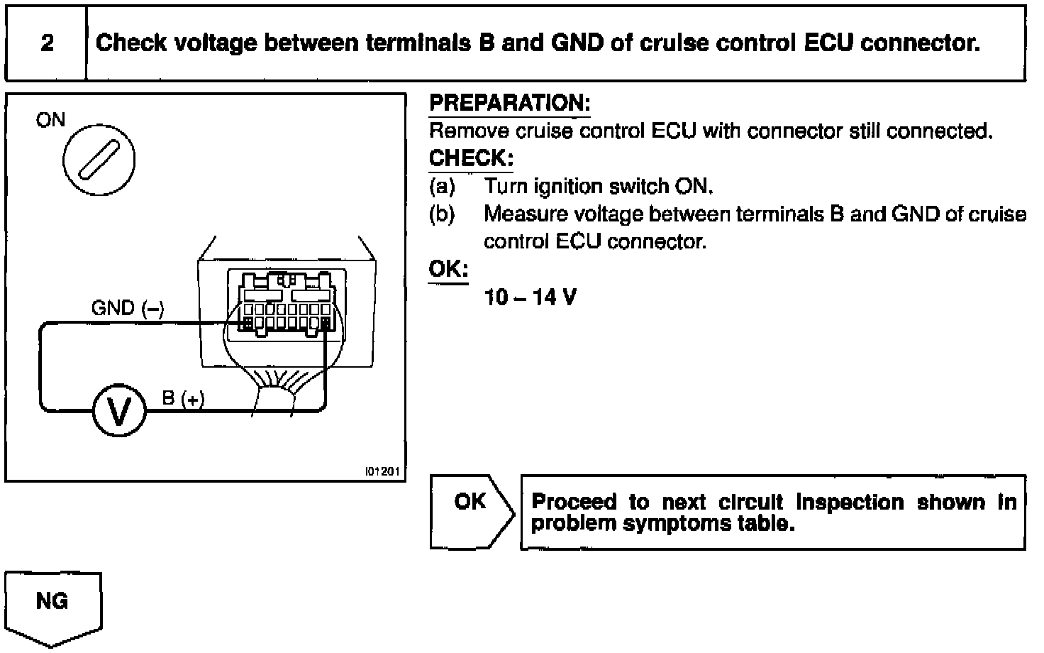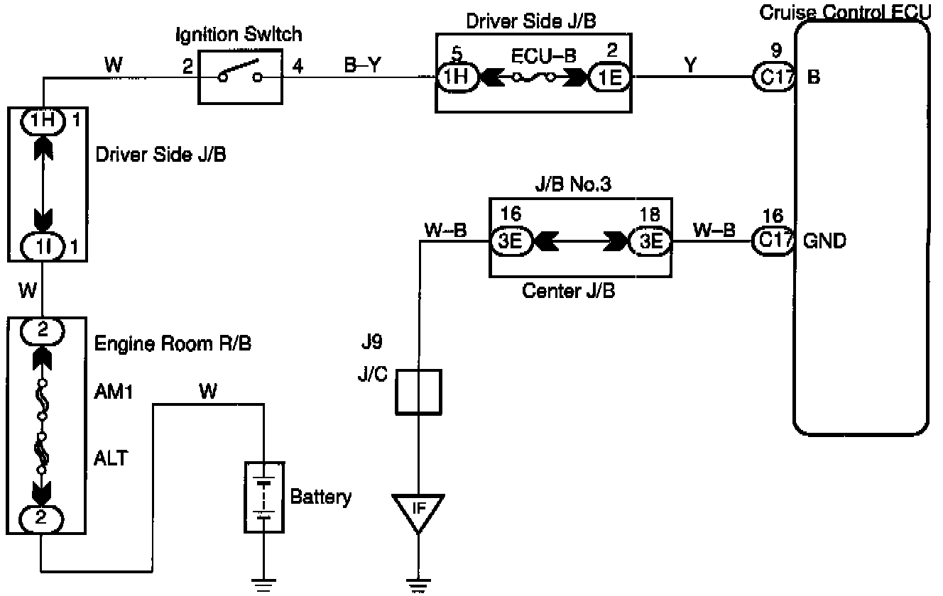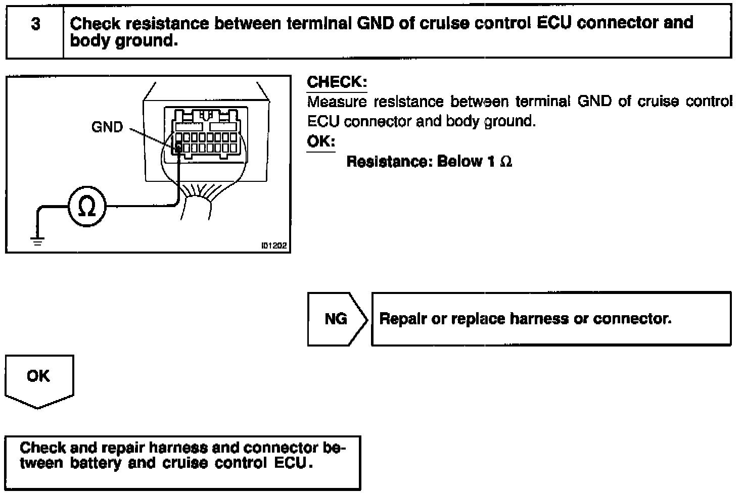 The ECU power source supplies power to the actuator and sensors, etc., when terminal GND and the cruise control ECU case are grounded.