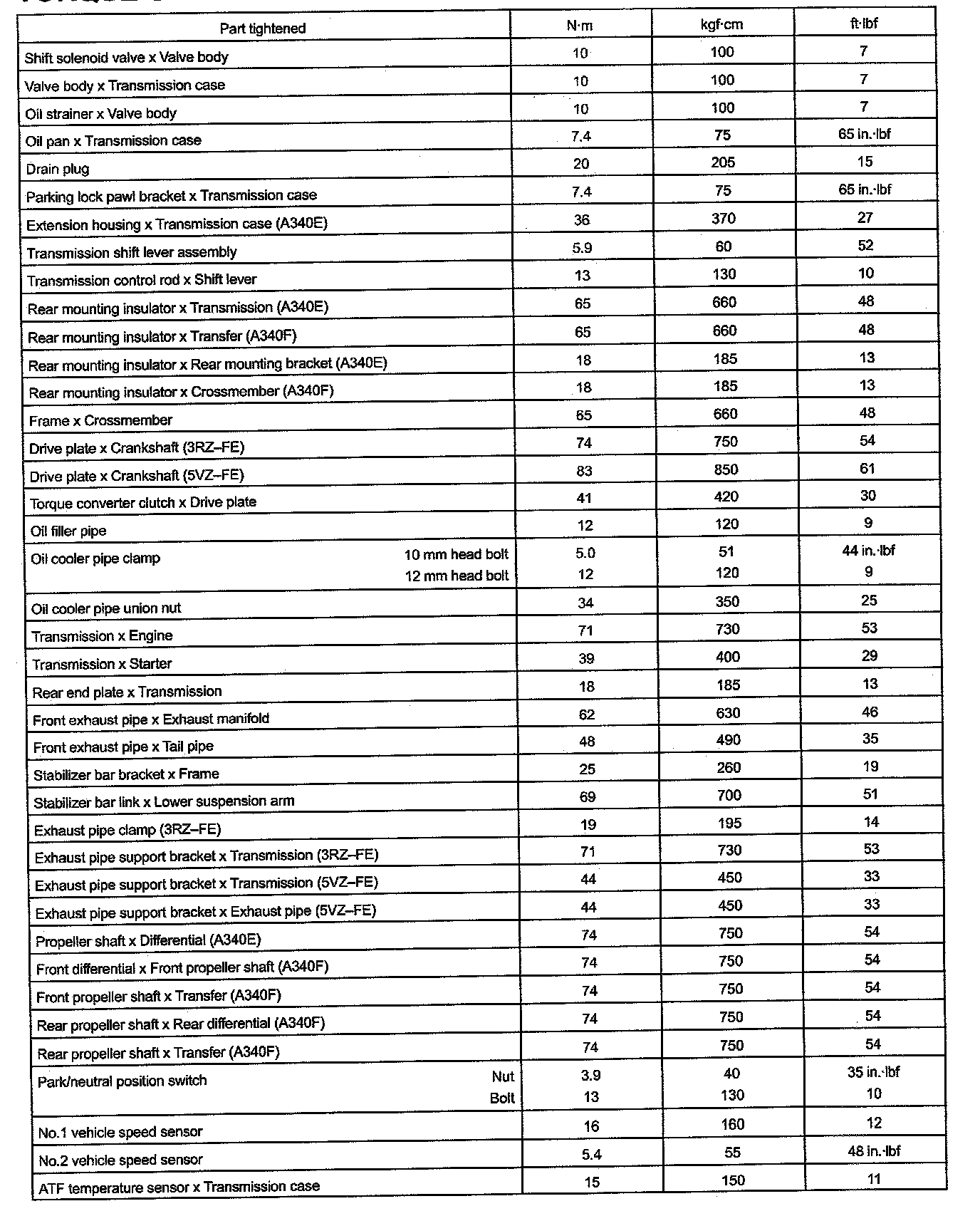 A/T Torque Data