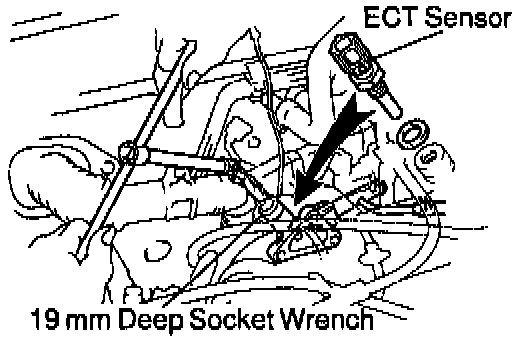 (a) Using a 19 mm deep socket wrench, install the ECT sensor and gasket.