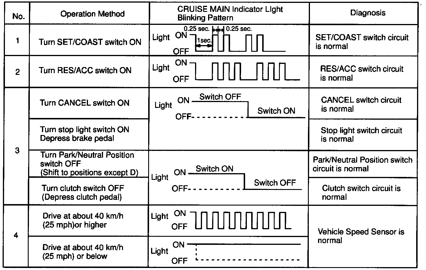 (f) Read the blinking pattern of the CRUISE MAIN indicator light.