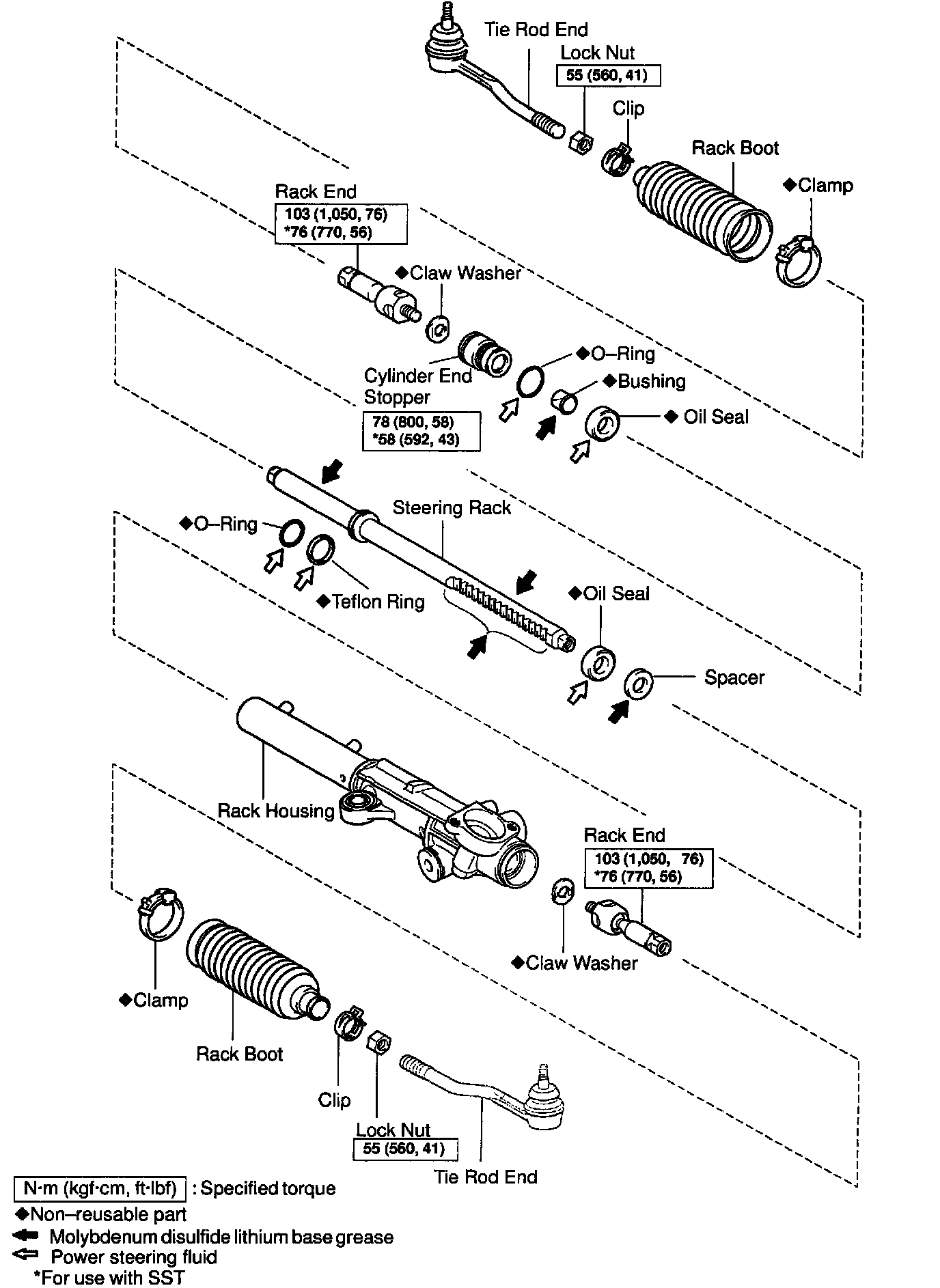 RACK HOUSING, STEERING RACK AND RACK ENDS