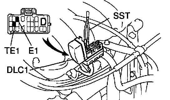 a. Using Special Service Tool (SST), connect terminals TE1 and E1 of the DLC1.