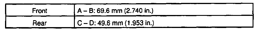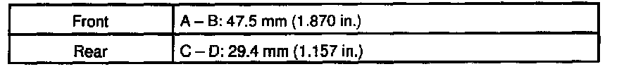 d. As shown in the illustration, read the distance from the standard value to the measured value, and adjust the front and/or rear adjusting cams accordingly.
