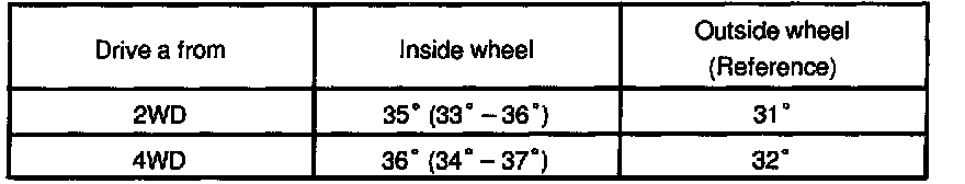 Turn the steering wheel fully, and measure the turning angle.