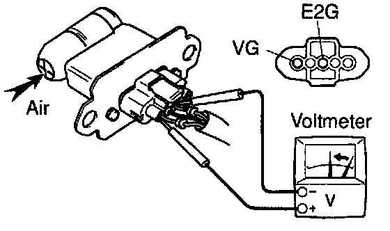 c. Using a voltmeter, connect the positive (+) tester probe to terminal VG, and negative (-) tester probe to terminal E2G.