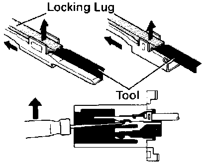 a. Locking device must be disengaged before the terminal locking clip can be released and the terminal removed from the connector.