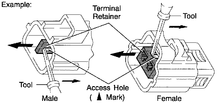 Type which cannot be pulled as far as Power Lock insert the tool straight into the access hole of terminal retainer as shown.