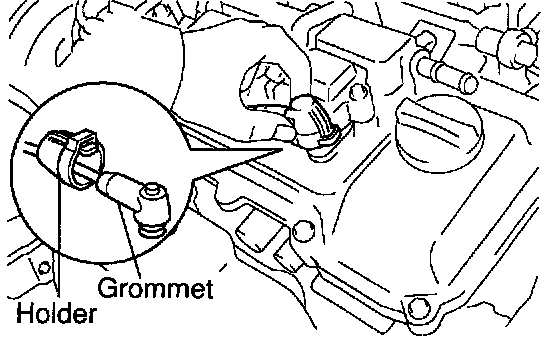 NOTE: Check that the holder is correctly installed to the grommet and ignition coil as shown in the illustration.