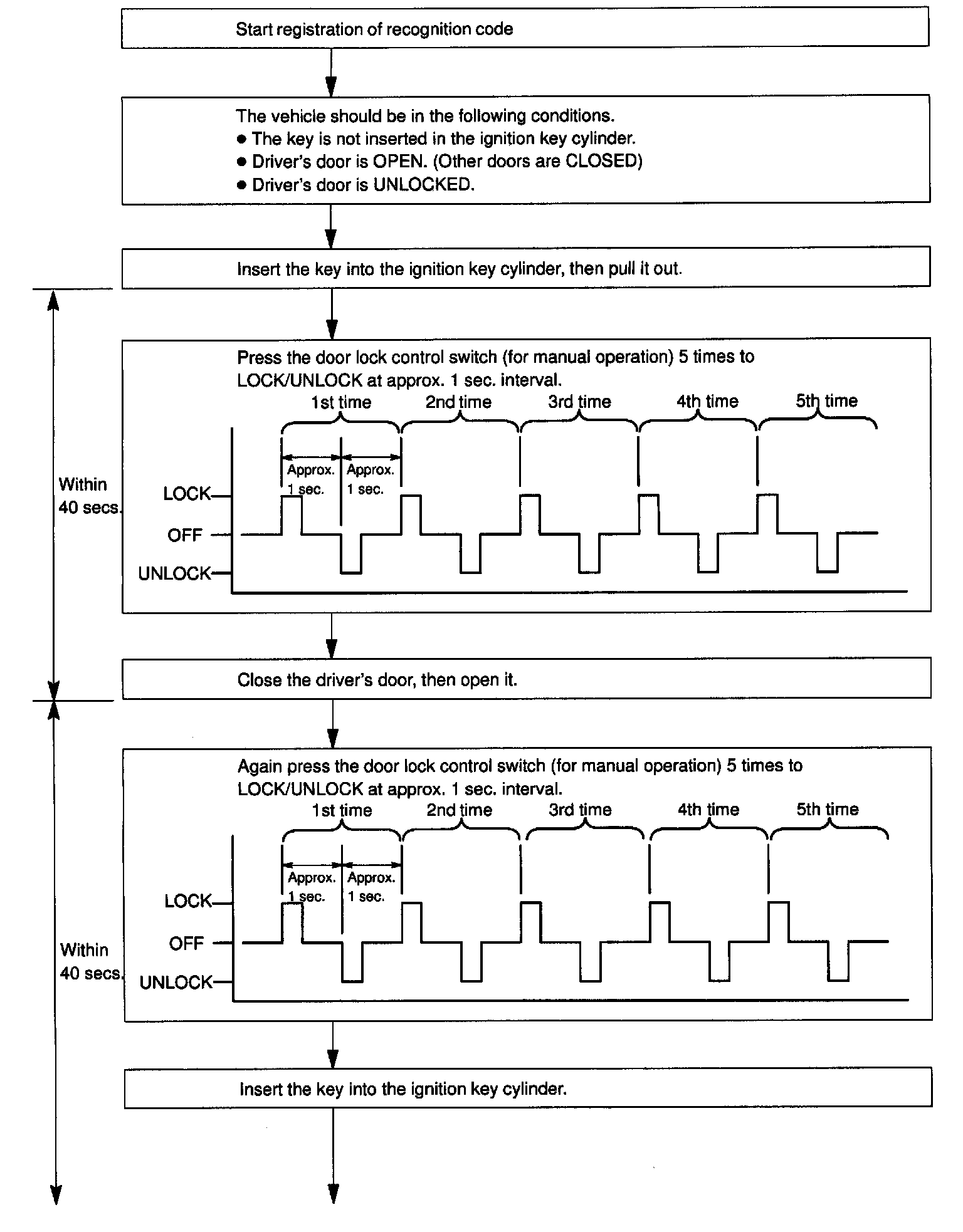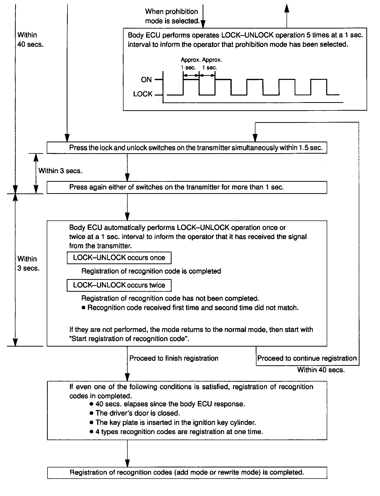 b. Follow the chart to register the transmitter recognition code at the back door ECU.