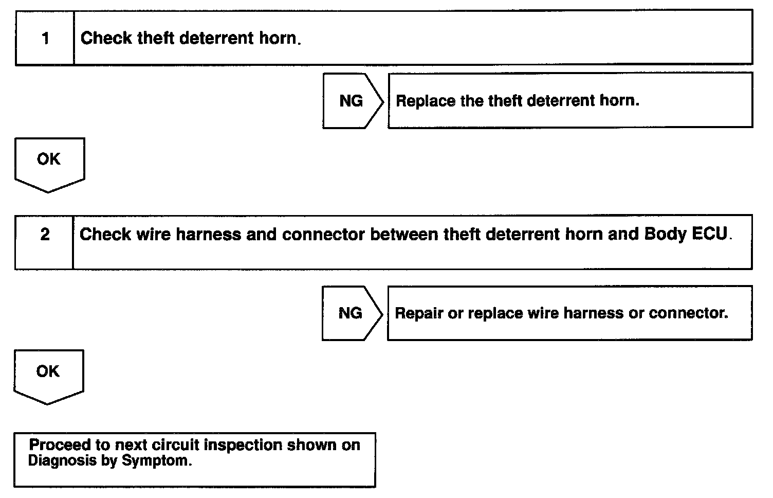 During warning of the theft deterrent system, the Body ECU activates the theft deterrent horn.