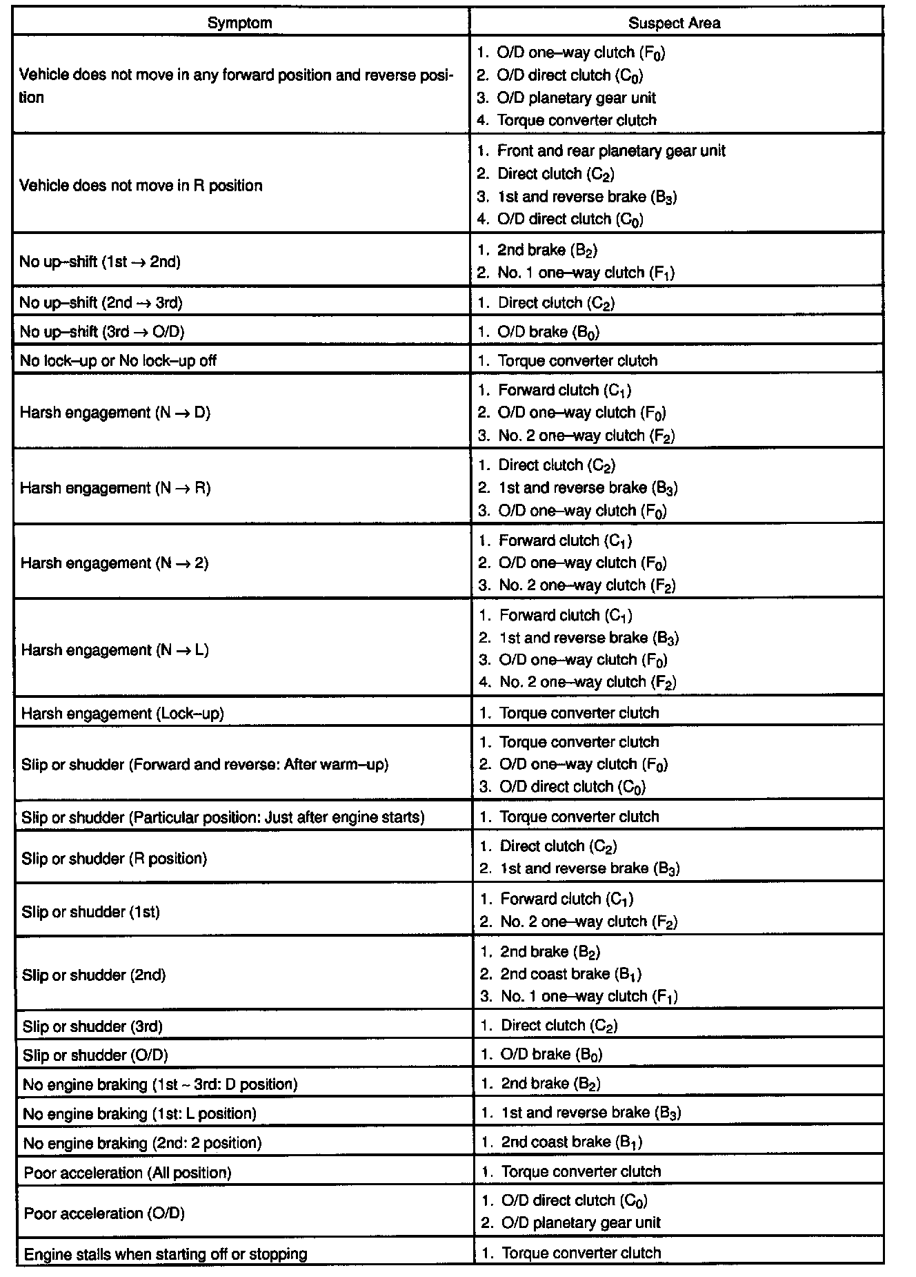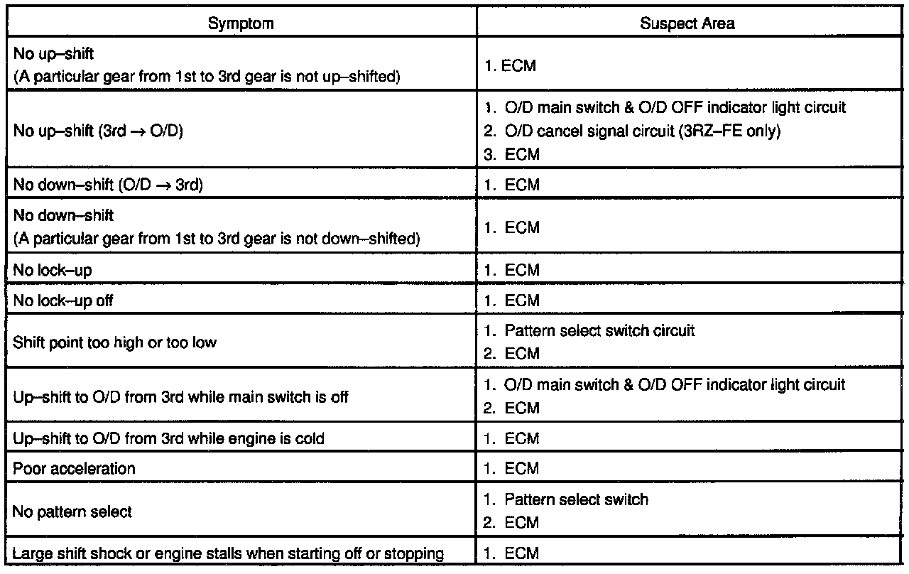 HINT: If a normal code is displayed during the diagnostic trouble code check but the trouble still occurs, check the circuits for each symptom in the order given in the charts on the following pages and proceed to the page given for troubleshooting.The Matrix Chart is divided into 3 chapters.