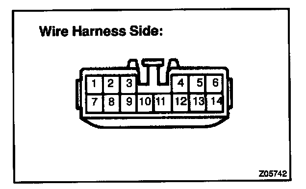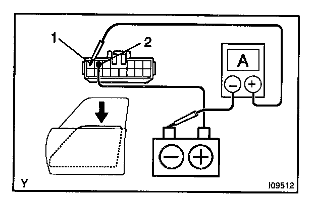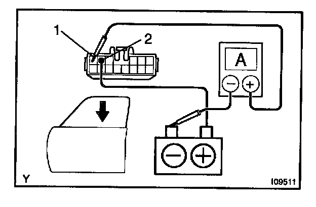 b. Connect the positive (+) lead from the ammeter to terminal 1 on the wire harness side connector and the negative (-) lead to negative terminal of the battery.
