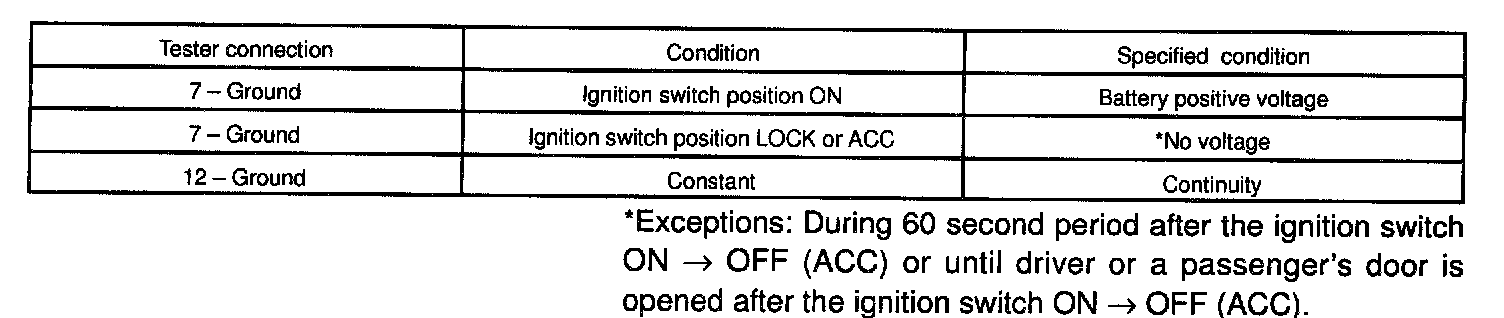 If the circuit is not as specified, inspect the circuits connected to other parts.