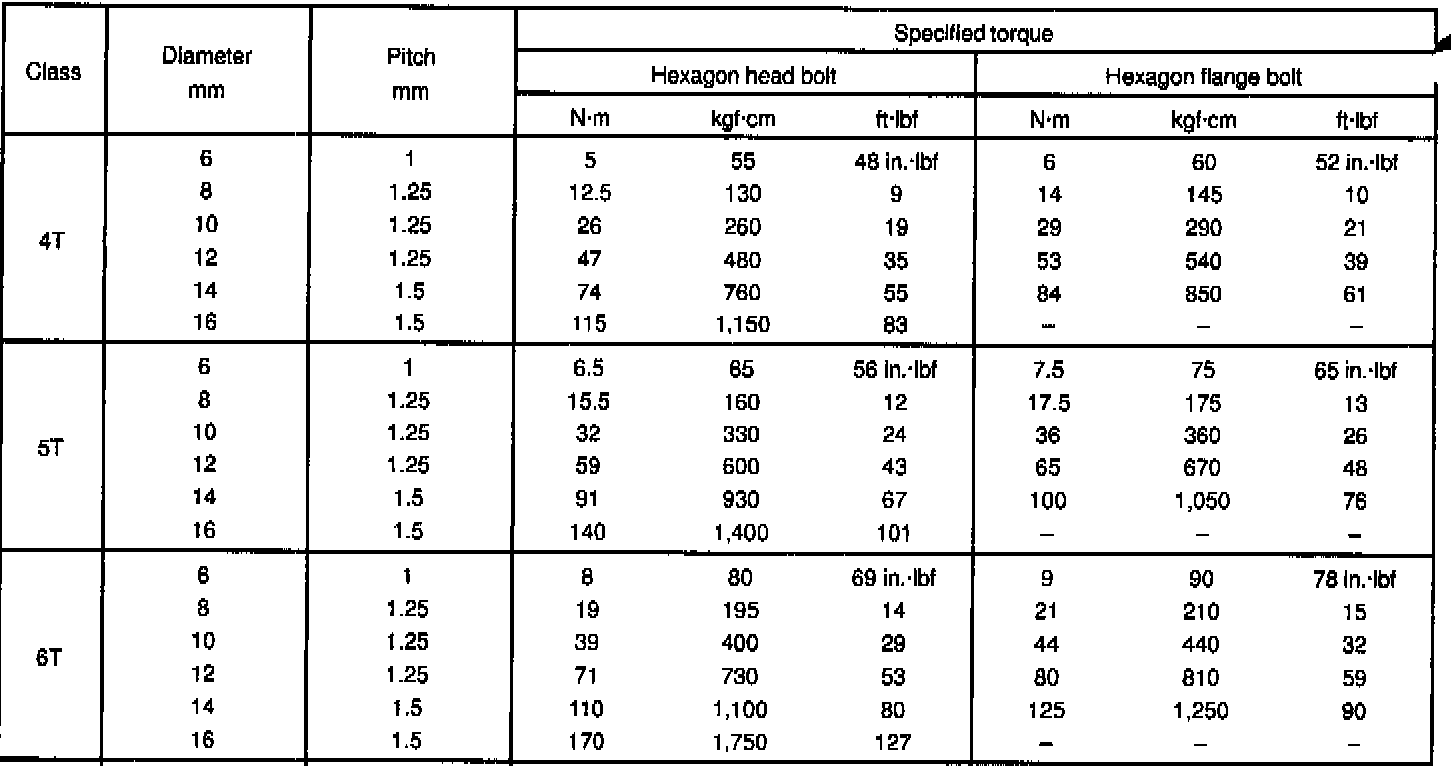 Standard Bolt Torque: