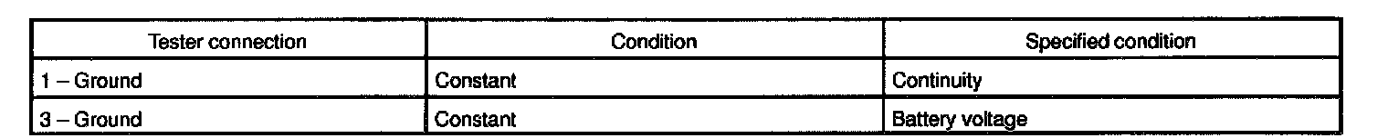a. Disconnect the connector from the relay and inspect the connector on wire harness side, as shown in the chart below.