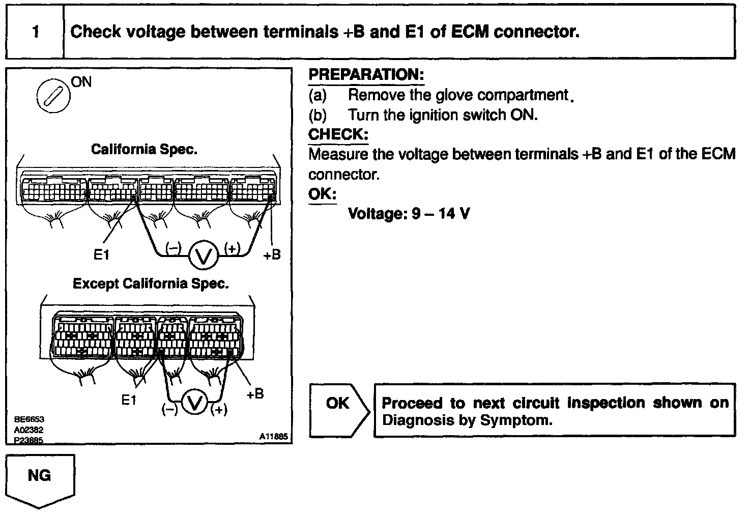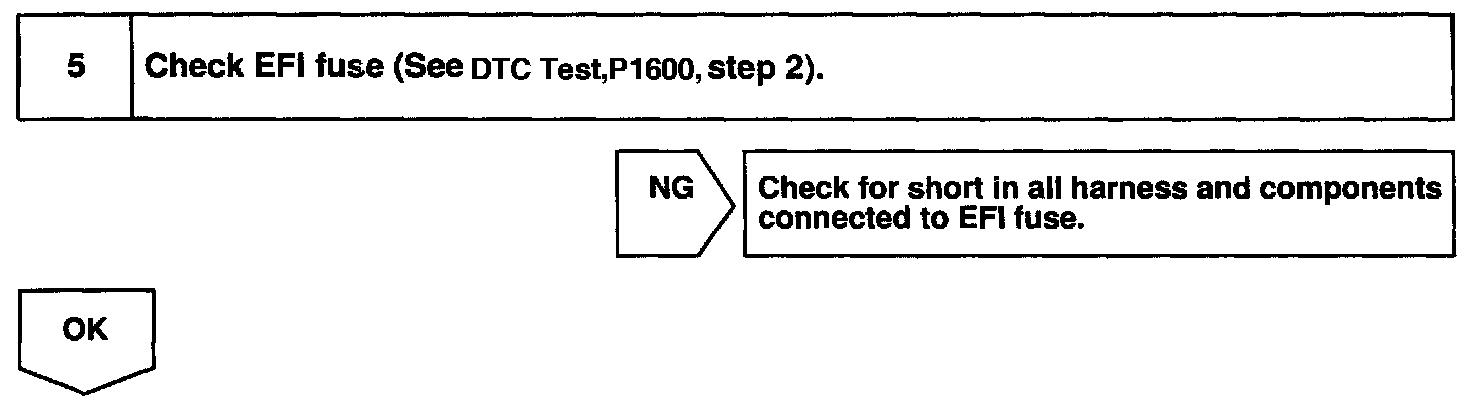 When the ignition switch is turned ON, battery positive voltage is applied to coil, closing the contacts of the EFI main relay (Marking: EFI) and supplying power to terminal +B of the ECM.