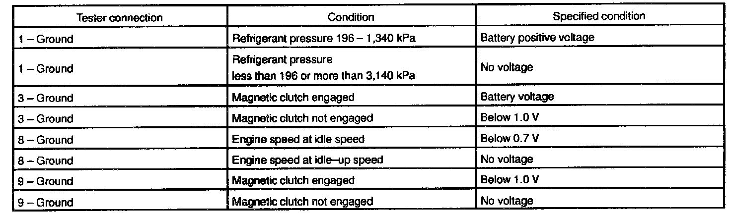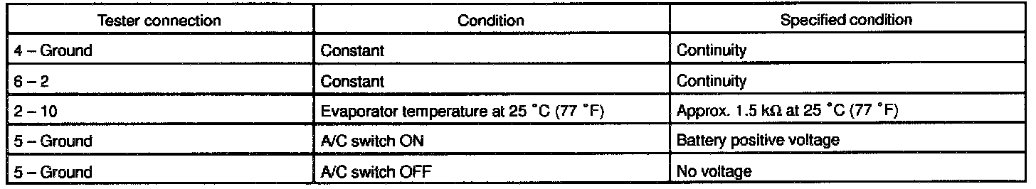 b. Disconnect the amplifier connector and inspect the connector on wire harness side, as shown in the chart.