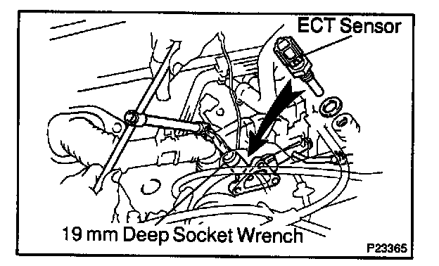 b. Using a 19 mm deep socket wrench, install the ECT sensor.