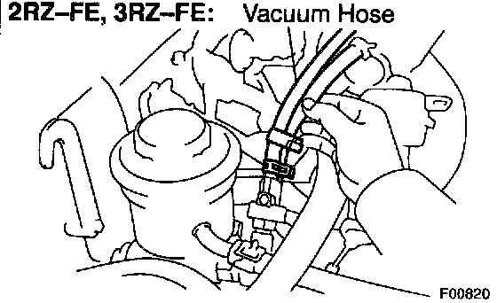 c. Check that the engine rpm decreases when the vacuum hose of the air control valve is pinched.