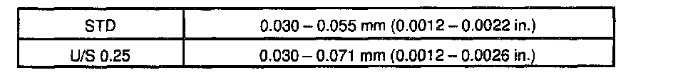 Maximum oil clearance: 0.10 mm (0.0039 inch)