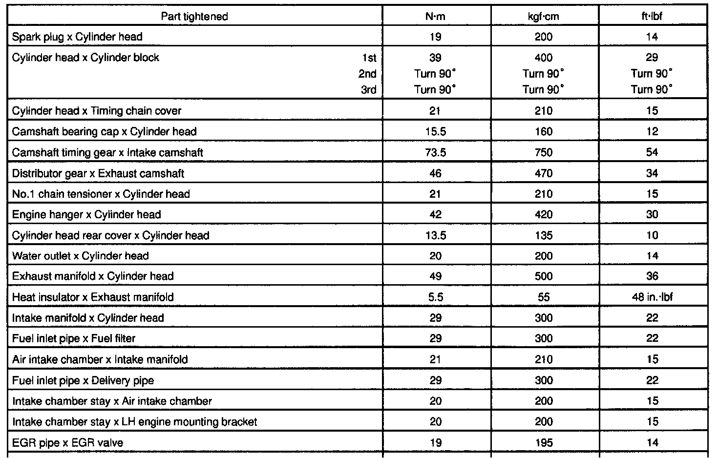 2RZ/3RZ-FE Cylinder Head Torque & Sequence: