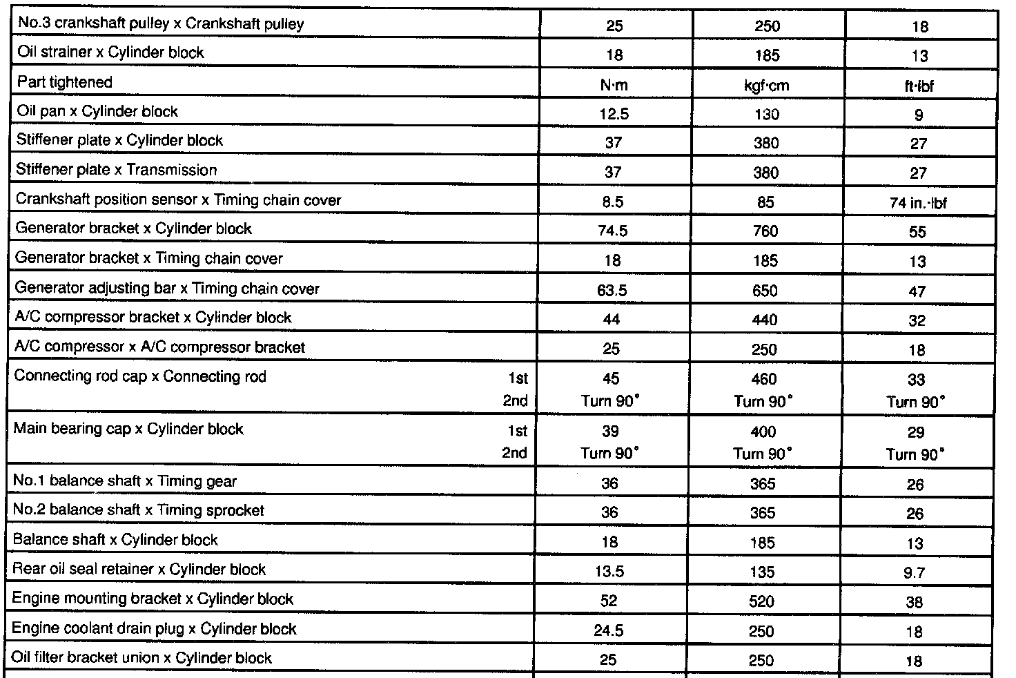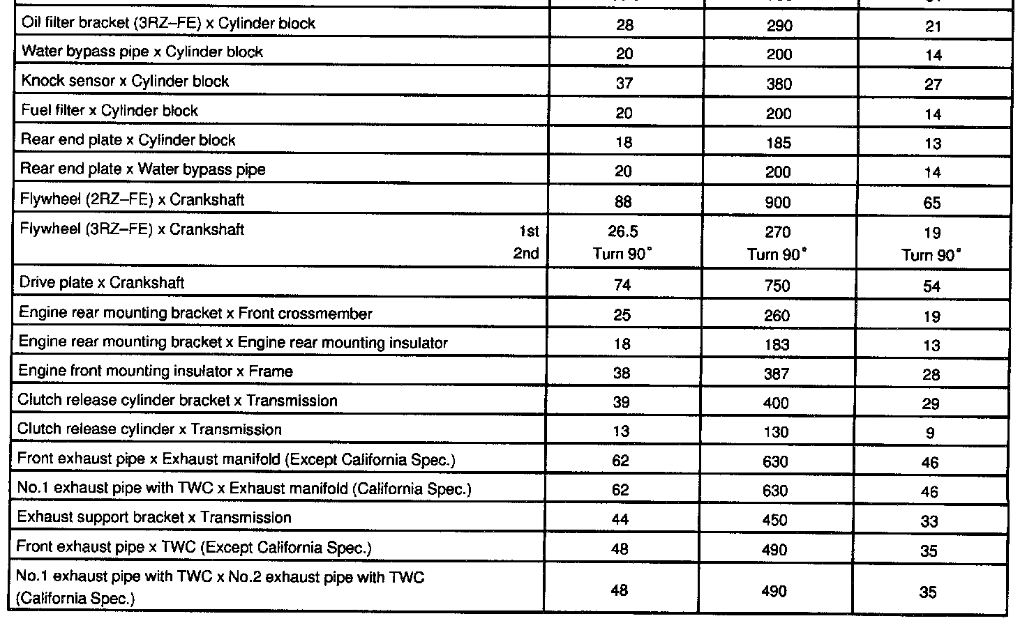 2RZ/3RZ Engine Mechanical Torque: