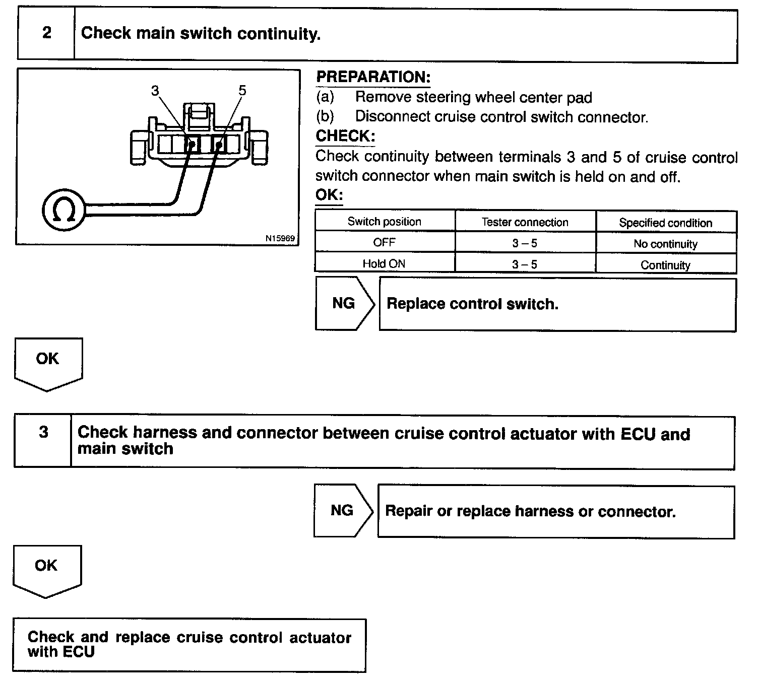 When the cruise control main switch is turned off, the cruise control does not operate.