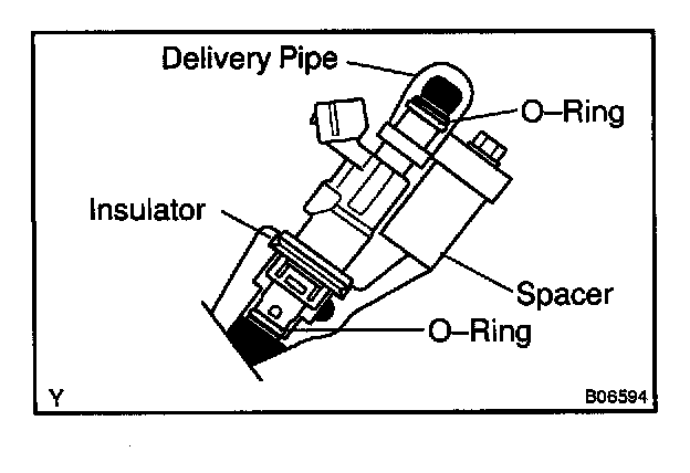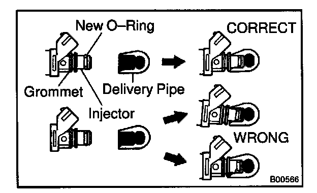 Before installing the injector, must apply spindle oil or gasoline on the place when a delivery pipe or an intake manifold touches an O-ring of the injector.