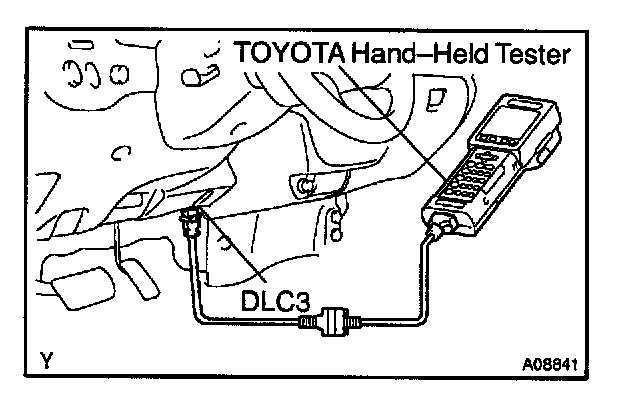 1. Connect the TOYOTA hand-held tester to the DLC3.